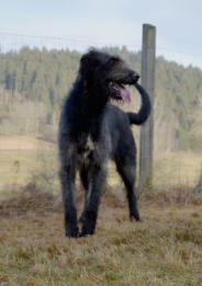 Geschichte der Irish Wolfhound~Der König der Hunde~“Ich möchte Dir einen Rüden darreichen, den ich aus Irland bekam.Er hat riesige Gliedmassen und ist als Begleiter einem kampfbereiten Manne gleichzusetzen.Darüber hinaus hat er den Verstand eines Menschen, und er wird deine Feinde anbellen, niemals aber deine Freunde. Er wird einem jeden Menschen am Gesicht ablesen, ob er gegen Dich Gutes oder Schlechtes im Sinn hat. Und er wird sein Leben für Dich lassen.” (The Icelandic Saga of Nial, 970-1014 n.Chr.)Die dunkle sagenumwobene Vergangenheit reicht bis 391 n.Chr. zurück und verhüllt die Geschichte über die Entstehung des Irish Wolfhound. Schon die alten Römer schrieben, von den großen Hunden aus Irland.Die in riesigen Eisenkäfigen als Geschenk, nach Rom zu den Spielen gebracht wurden.Kein irischer Clan ohne die großen irischen Hunde.Der Hund der den Königen vorbehalten war.Der Irish Wolfhound wurde als wertvolles Geschenk an die größten Monarchen der Welt verschenkt.Der Irish Wolfhound ist die weltweit größte Hunderasse. Die von der FCI (Nr.160, Gr.10, Sek.2) anerkannte Hunderasse kommt aus Irland.Archäologische Funde beweisen, dass es große windhundartige Hunde von über 70 cm schon um 7000 v.Chr.in Irland/ England und Wales gegeben hat. Es scheint so, dass die ersten Siedler 1.000 Jahre vor Ankunft der Kelten diese Hunde mitgebracht haben. Die Kelten kreuzten ihre Hunde (greyhoundartig) mit ihnen, und schufen so einen Jagd- und Kampfhund,der weit über ihren Einflußbereich bekannt wurde.Der genaue Ursprung des Irish Wolfhound ist nicht bekannt, mit Sicherheit handelt es sich dabei aber um eine sehr alte Rasse, die bereits in altrömischen Quellen erwähnt wird (Quintus Aurelius Memmius Symmachus, 391 n. Chr).Symnachus bedankte sich für die übersandten 7 Irish Hounds,die bei den Vorstellungen und Spielen in Rom für großes Aufsehen gesorgt hatten und schrieb:"Ganz Rom sah sie mit Erstaunen und stellte sich vor, sie müssten in Eisenkäfigen hierhergebracht worden sein."