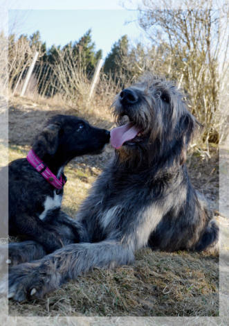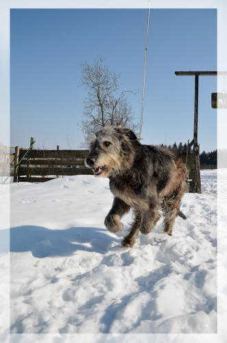 Der Irish Wolfshound soll nicht ganz so schwer und massig sein wie die deutsche Dogge,