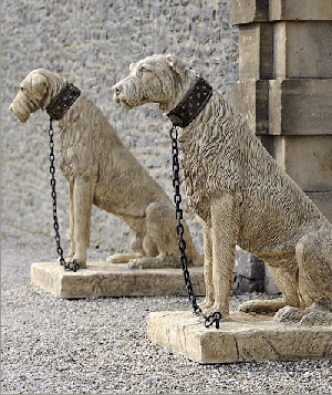 Geschichte der Irish Wolfhound~Der König der Hunde~“Ich möchte Dir einen Rüden darreichen, den ich aus Irland bekam.Er hat riesige Gliedmassen und ist als Begleiter einem kampfbereiten Manne gleichzusetzen.Darüber hinaus hat er den Verstand eines Menschen, und er wird deine Feinde anbellen, niemals aber deine Freunde. Er wird einem jeden Menschen am Gesicht ablesen, ob er gegen Dich Gutes oder Schlechtes im Sinn hat. Und er wird sein Leben für Dich lassen.” (The Icelandic Saga of Nial, 970-1014 n.Chr.)Die dunkle sagenumwobene Vergangenheit reicht bis 391 n.Chr. zurück und verhüllt die Geschichte über die Entstehung des Irish Wolfhound. Schon die alten Römer schrieben, von den großen Hunden aus Irland.Die in riesigen Eisenkäfigen als Geschenk, nach Rom zu den Spielen gebracht wurden.Kein irischer Clan ohne die großen irischen Hunde.Der Hund der den Königen vorbehalten war.Der Irish Wolfhound wurde als wertvolles Geschenk an die größten Monarchen der Welt verschenkt.Der Irish Wolfhound ist die weltweit größte Hunderasse. Die von der FCI (Nr.160, Gr.10, Sek.2) anerkannte Hunderasse kommt aus Irland.Archäologische Funde beweisen, dass es große windhundartige Hunde von über 70 cm schon um 7000 v.Chr.in Irland/ England und Wales gegeben hat. Es scheint so, dass die ersten Siedler 1.000 Jahre vor Ankunft der Kelten diese Hunde mitgebracht haben. Die Kelten kreuzten ihre Hunde (greyhoundartig) mit ihnen, und schufen so einen Jagd- und Kampfhund,der weit über ihren Einflußbereich bekannt wurde.Der genaue Ursprung des Irish Wolfhound ist nicht bekannt, mit Sicherheit handelt es sich dabei aber um eine sehr alte Rasse, die bereits in altrömischen Quellen erwähnt wird (Quintus Aurelius Memmius Symmachus, 391 n. Chr).Symnachus bedankte sich für die übersandten 7 Irish Hounds,die bei den Vorstellungen und Spielen in Rom für großes Aufsehen gesorgt hatten und schrieb:"Ganz Rom sah sie mit Erstaunen und stellte sich vor, sie müssten in Eisenkäfigen hierhergebracht worden sein."